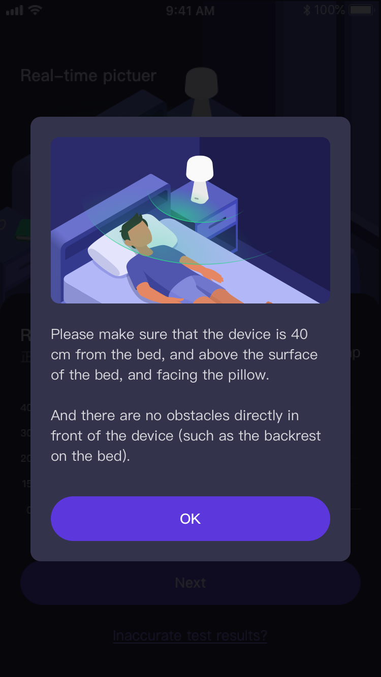 First, effortless onboarding. For a device with strict placement requirements, the key challenge was to guide users with minimal friction. We designed an intuitive setup process that made correct placement feel simple and reassuring.
